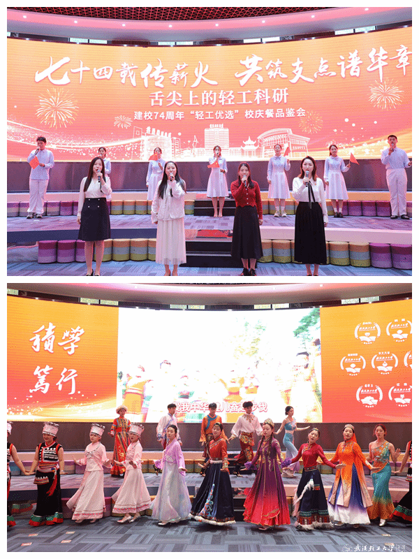 活动中,“轻工优选”校庆餐食材江汉大米、“楚牛一号”牛肉、秘制黄鳝、无抗养殖猪肉、富硒鸡蛋、富硒豇豆等相关科研团队负责人及企业代表,分享了科研成果从实验室走向餐桌的故事,彰显了学校深化产教研融合、服务地方经济发展的办学特色;师生带来了《爱我中华》《歌唱祖国》《红星照我去战斗》等歌舞表演,在激昂的旋律中赓续红色血脉,砥砺爱校荣校情怀,凝聚起磅礴的奋进力量。