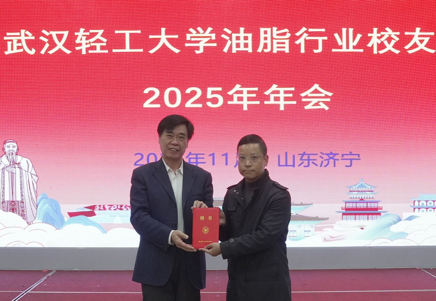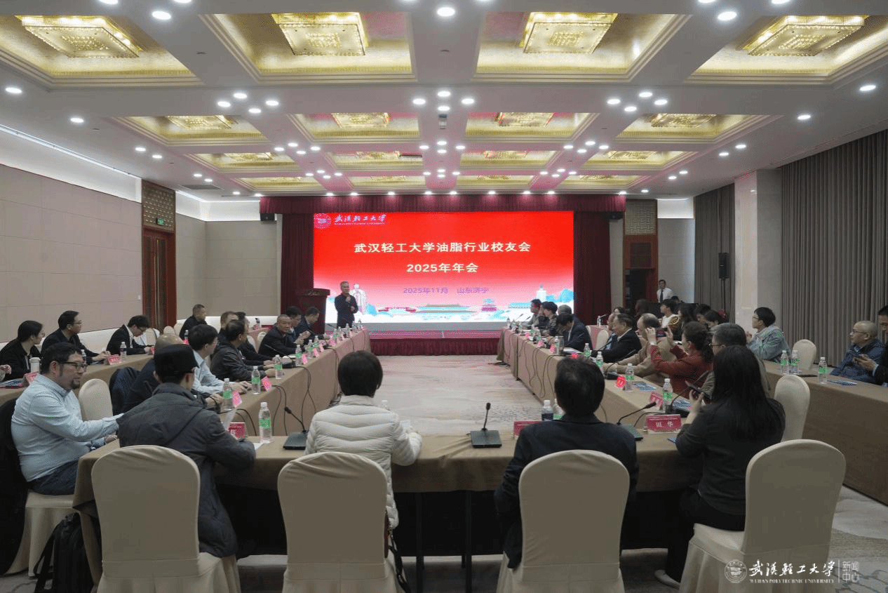 本网讯 11月14日,武汉轻工大学油脂行业第一届校友会第五次会议暨2025年年会在山东济宁市顺利召开。武汉轻工大学党委副书记、校长、校友总会会长董仕节教授,原党委副书记刘丰林教授,原副校长周坚教授,中国粮油学会油脂分会会长何东平教授,武汉轻工大学油脂行业校友会会长、1994级校友鄢华勇等出席会议。会议由武汉轻工大学油脂行业校友会常务副会长、1996级校友潘坤主持。