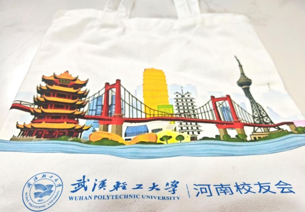 本次伴手礼是由河南校友会特别定制的,以“双城记忆”为设计主线,融合了武汉黄鹤楼、鹦鹉洲大桥与郑州二七塔、郑州大剧院等两地标志,不仅承载着校友的青春记忆与地域情怀,更象征着校友会如枢纽般联结彼此、共赴未来的美好寓意。